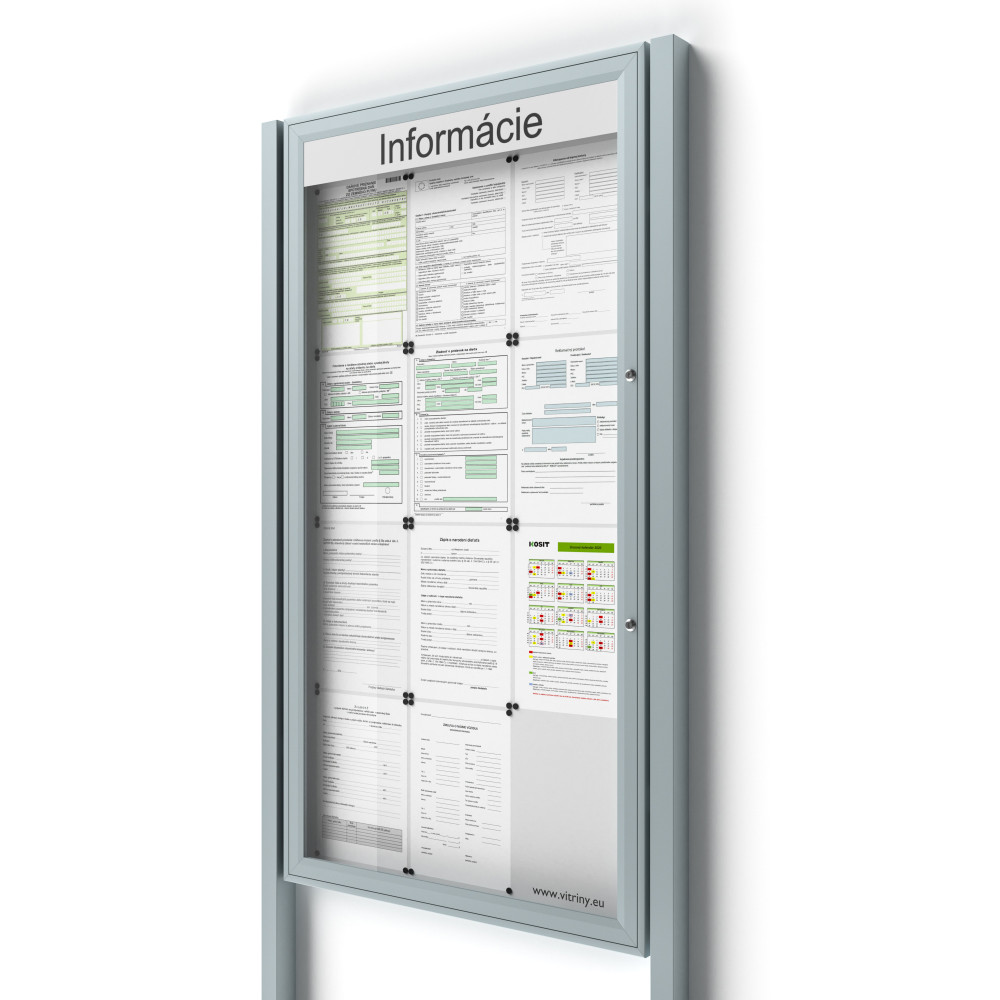 Uzamykateľná informačná vitrína 12bxA4 SIDE50 s nápisom a stĺpikmi