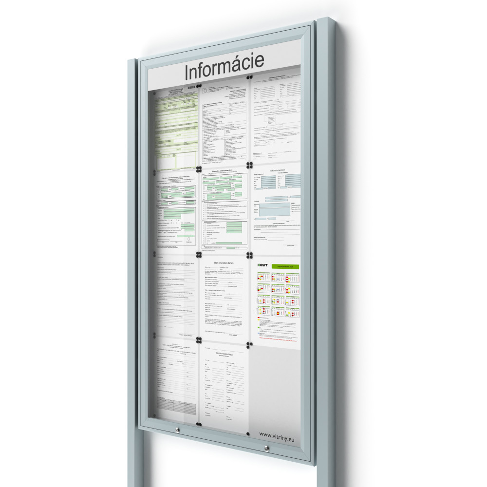 Uzamykateľná informačná vitrína 12bxA4 UP50 s nápisom a stĺpikmi