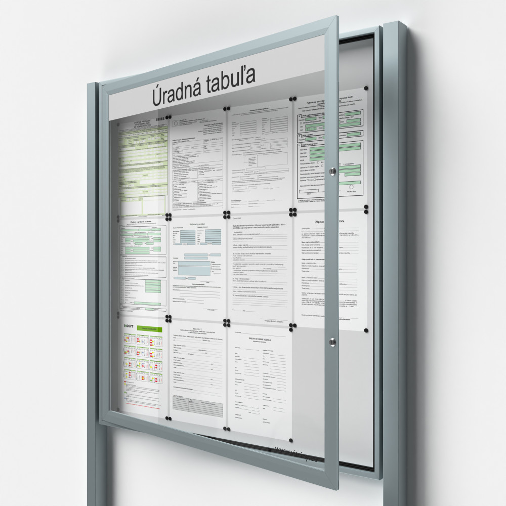 x integrovaný zámok spoľahlivo uschová oznamy a listiny vo vnútri vitríny.