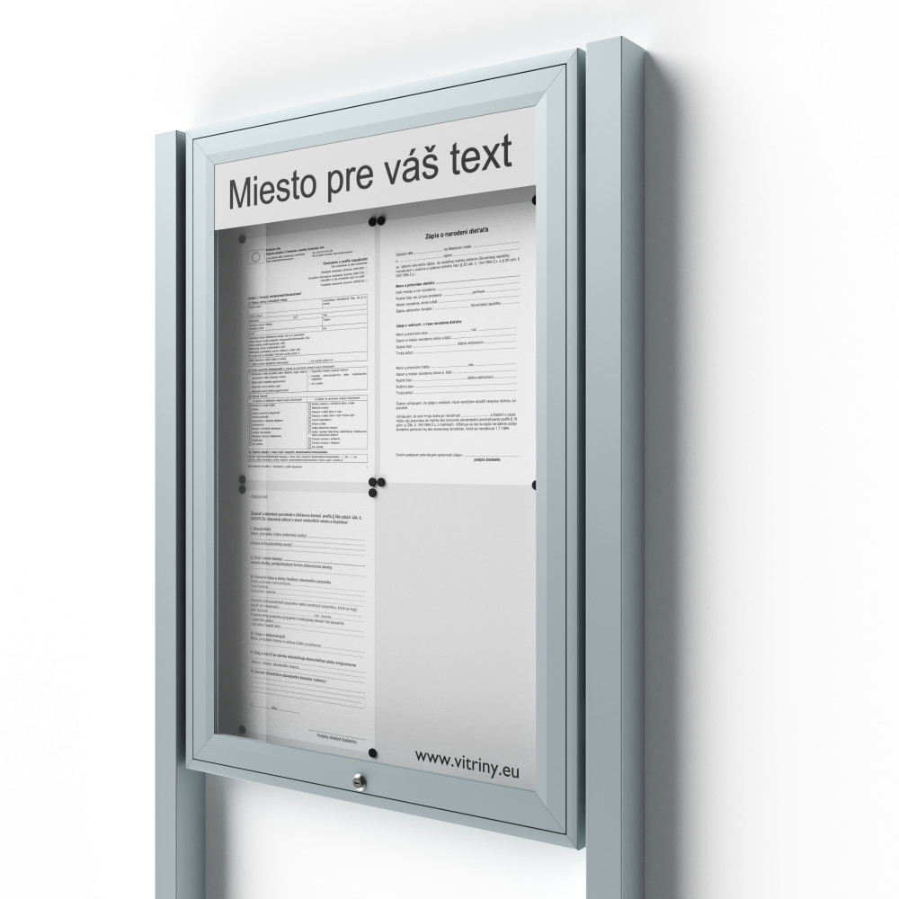 Uzamykateľná informačná vitrína 4xA4 UP50 s nápisom a stĺpikmi