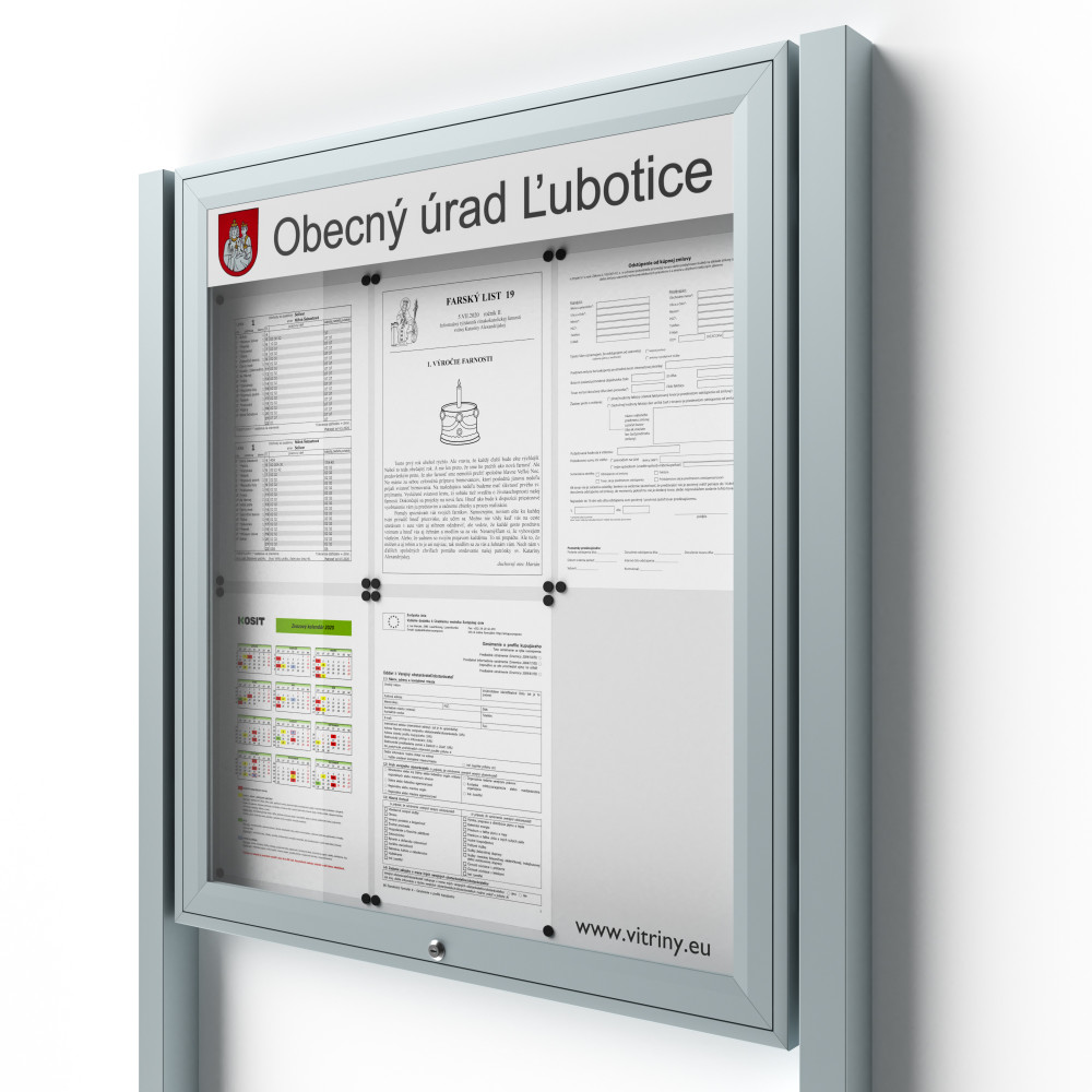 Uzamykateľná informačná vitrína 6xA4 UP50 s nápisom a stĺpikmi