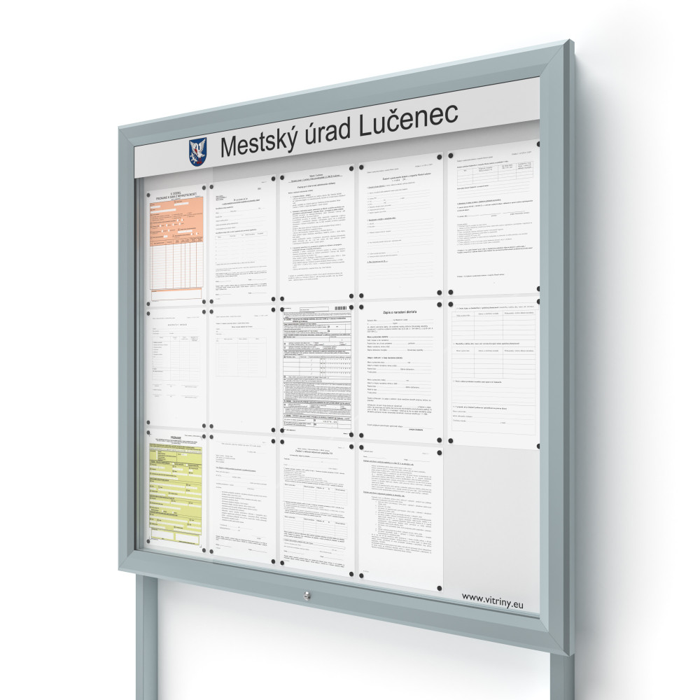 Vonkajšia informačná vitrína 15xA4 UP60 s nápisom a stĺpikmi
