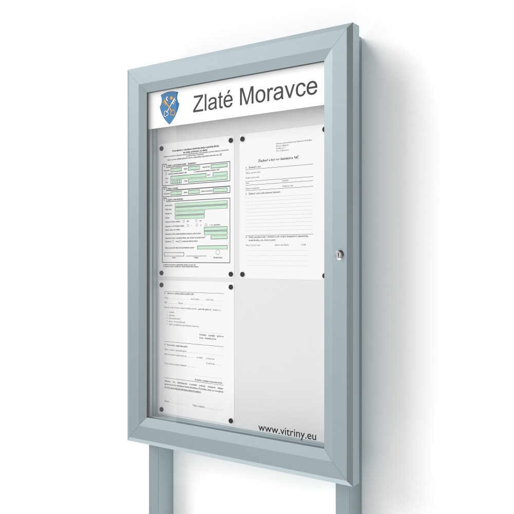 Vonkajšia informačná vitrína 4xA4 SIDE60 s nápisom a stĺpikmi