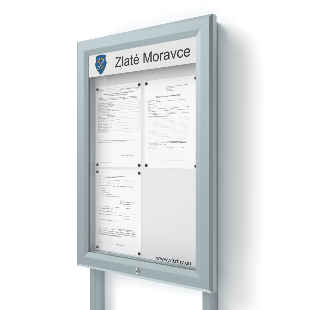 Vonkajšia informačná vitrína 4xA4 UP60 s nápisom a stĺpikmi