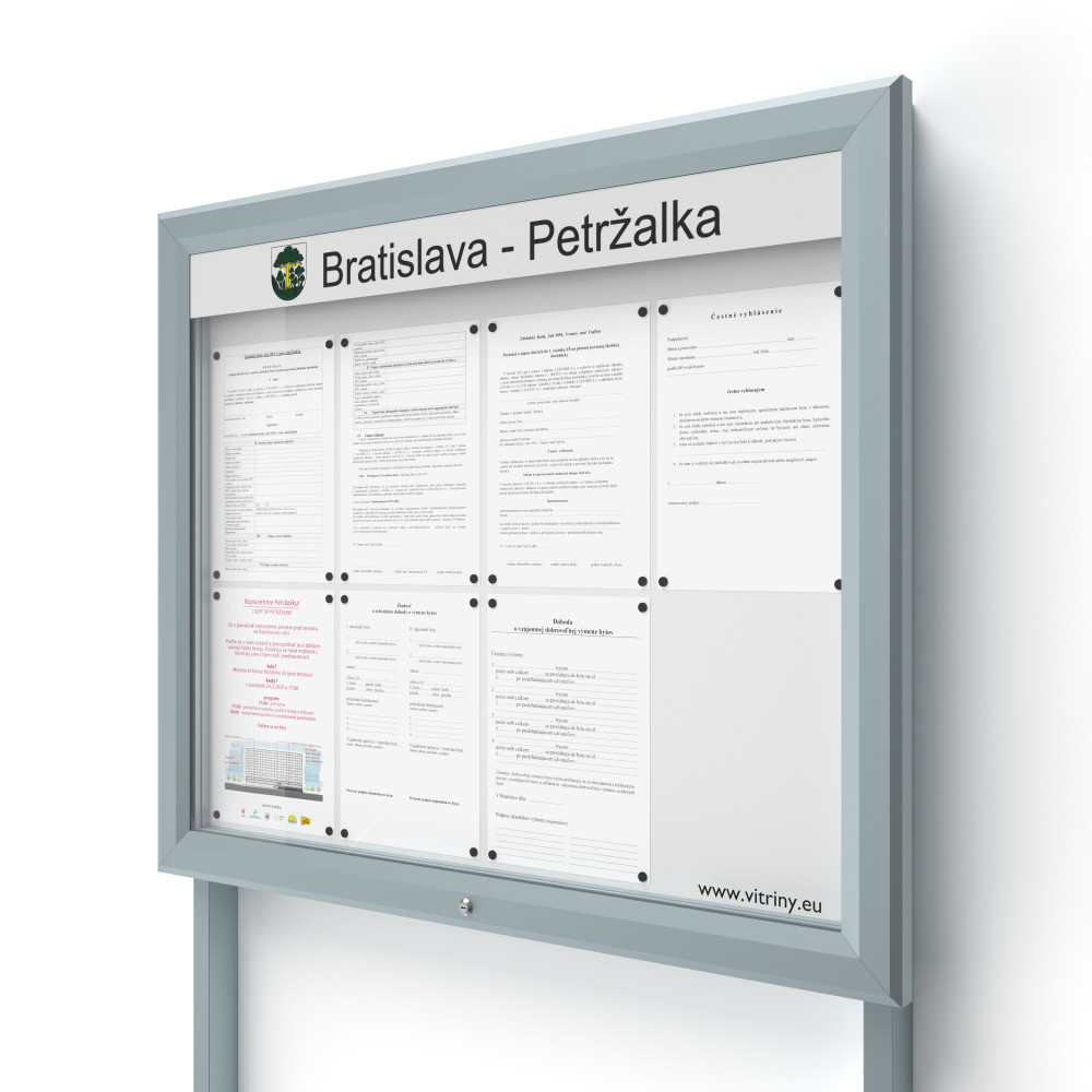 Vonkajšie rozmery informačnej vitríny sú 1000x835 mm.